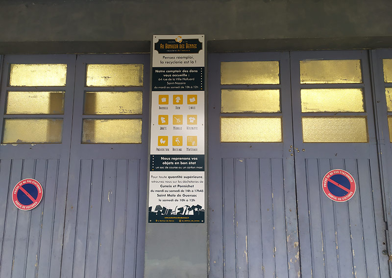 Flèchage Comptoire des dons – Au Bonheur Des Bennes