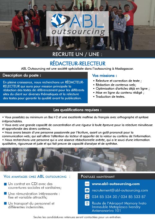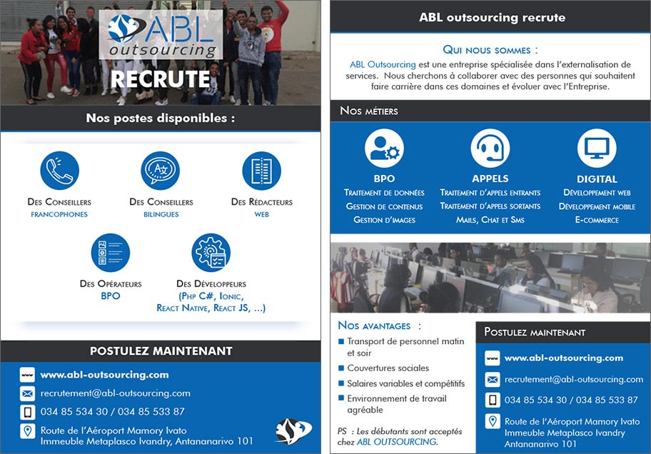 ABL outsourcing : flyer de recrutement (recto/verso)
