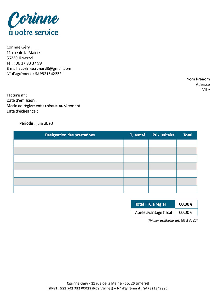 Modèle de facture – Corinne Gery